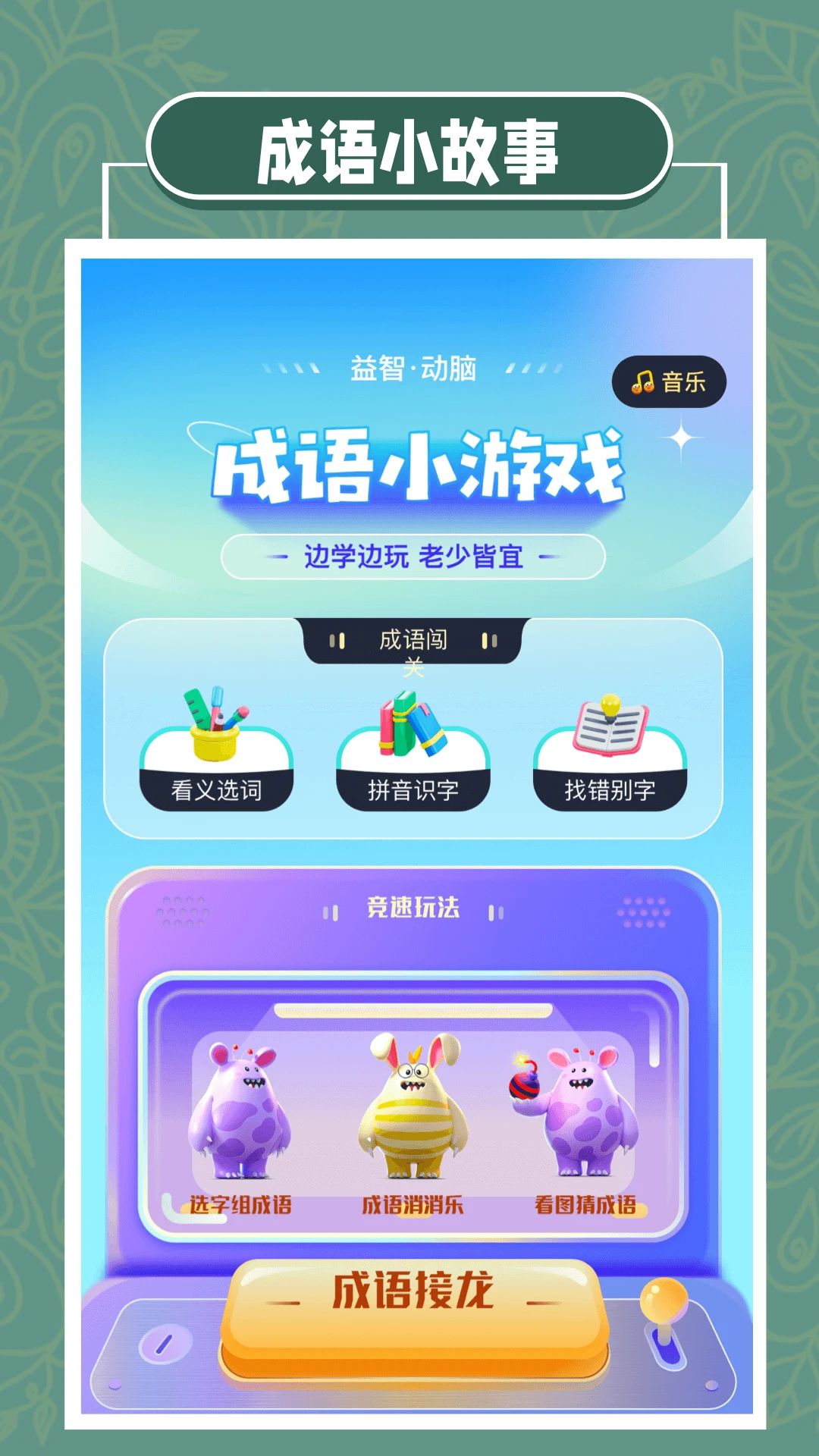 一款轻松休闲、简单有趣的成语学习软件,用户可以体验各种丰富的题型和趣味十足的内容,从中体验到成语学习的乐趣,并且可以掌握许多成语词汇,成为成语高手!