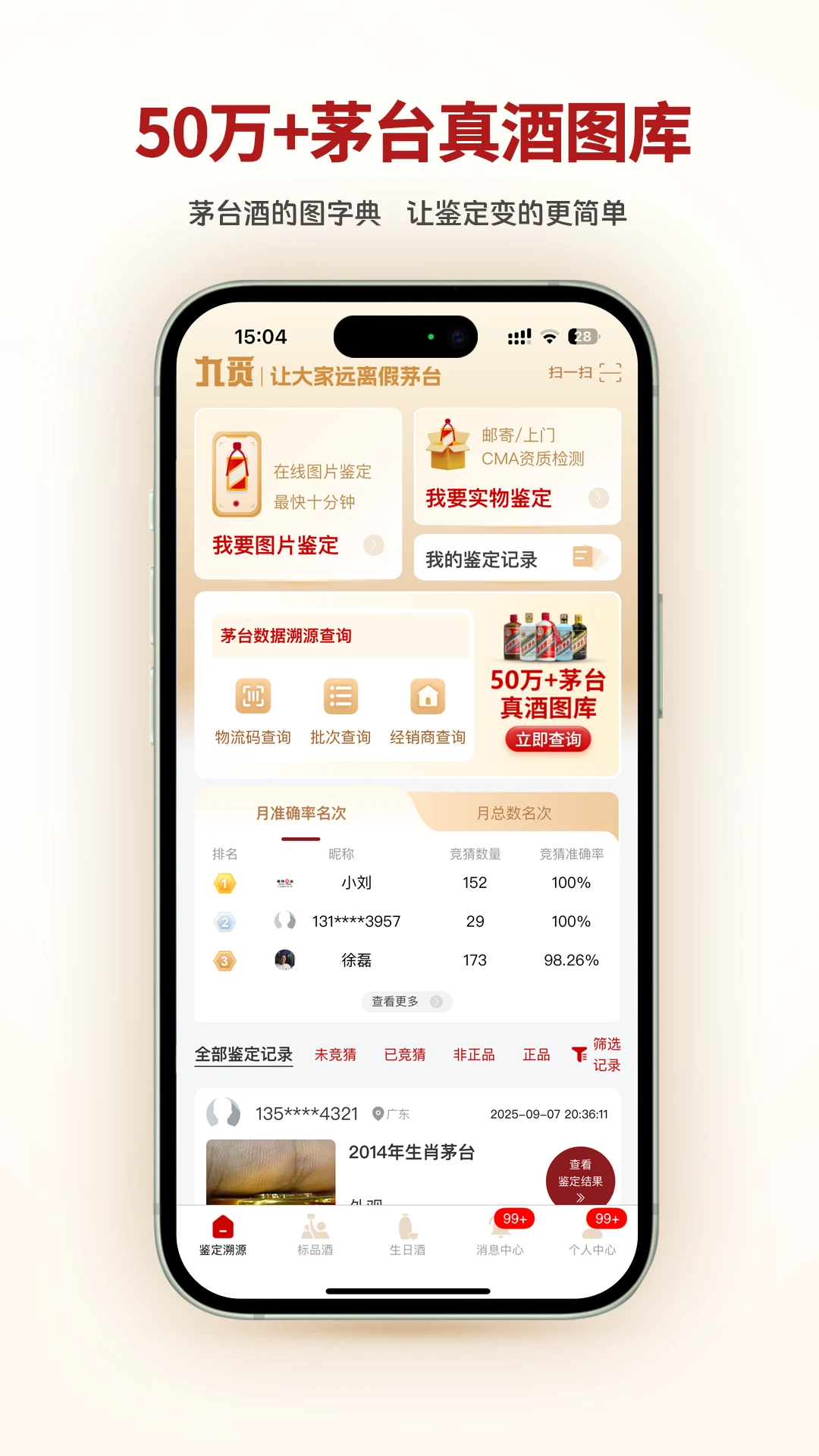50万+真酒图库:覆盖历年批次的茅台酒,为用户提供全面的参考数据。