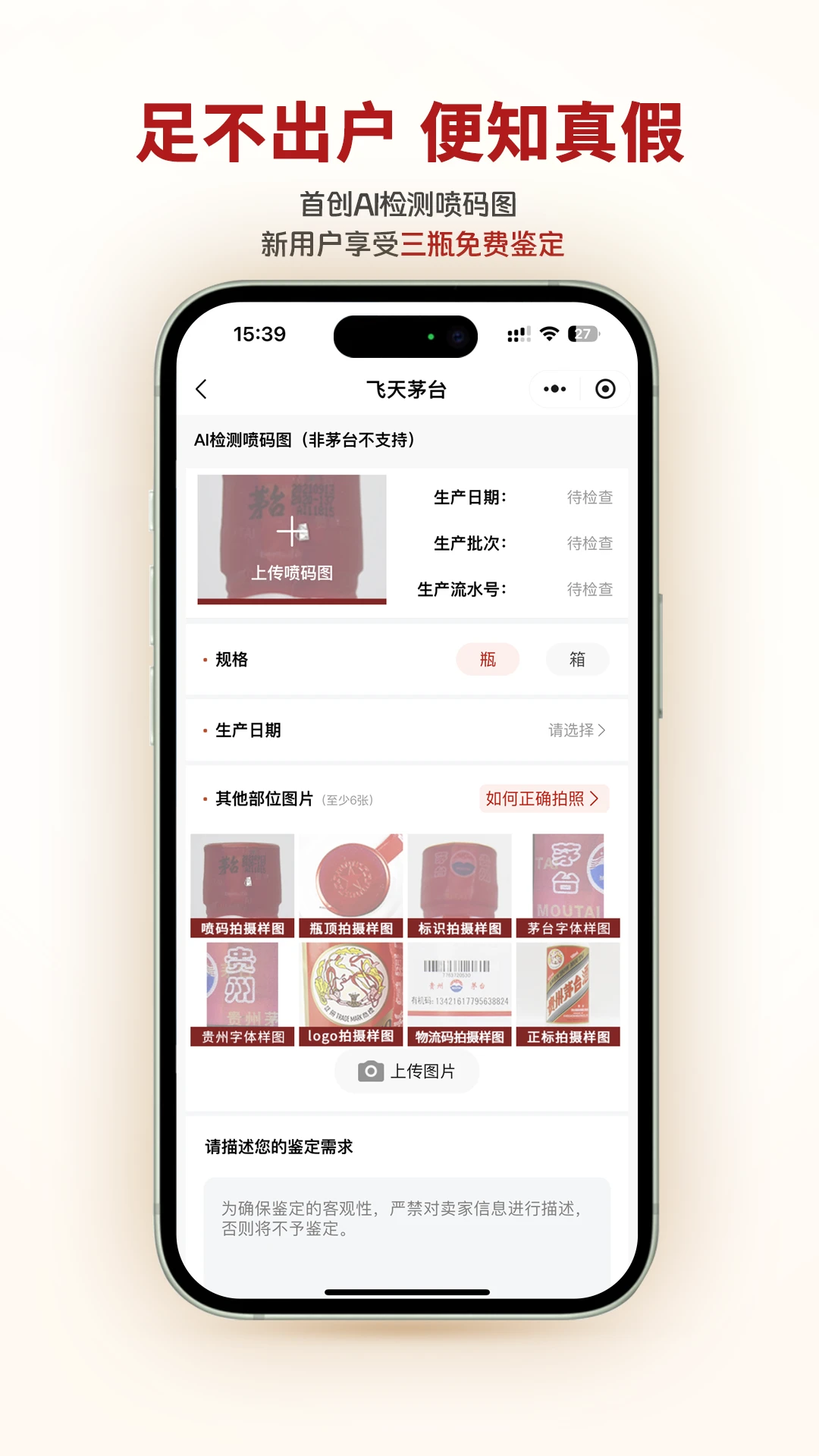 真假鉴定:结合50万+真酒图库,提供专业的真假鉴定服务,确保茅台的真实性。