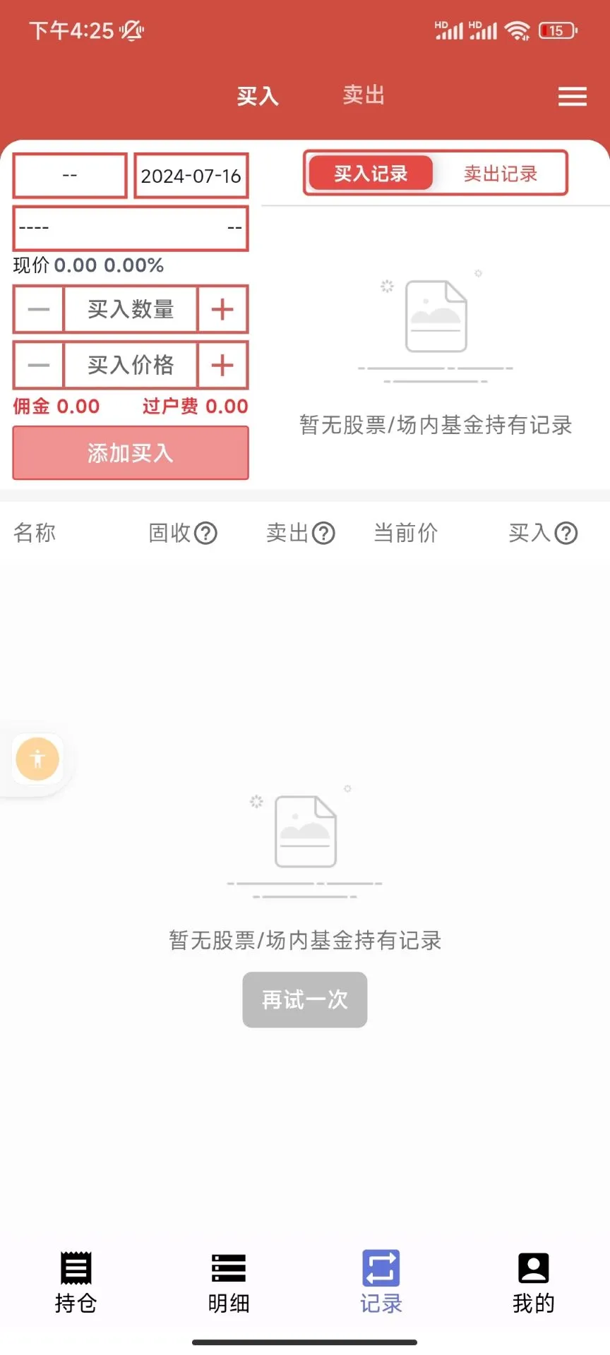 买入卖出记录功能可详细记录每一笔交易,方便用户追踪投资动态。