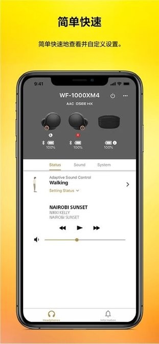 可以直接使用Headphones Connect APP中的内嵌播放列表来进行音乐播放、暂停、上一首、下一首以及音量调节操作,省去切换至的操作。整合的音乐控制功能让您无需离开应用就能完成所有播放操作,大大提升使用便利性。