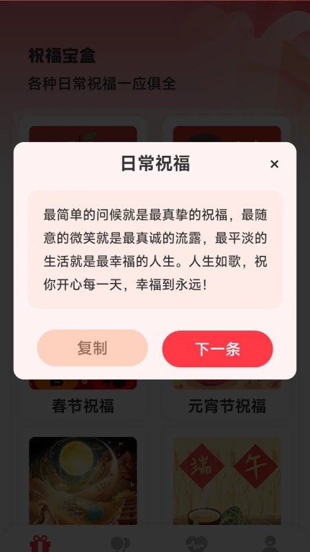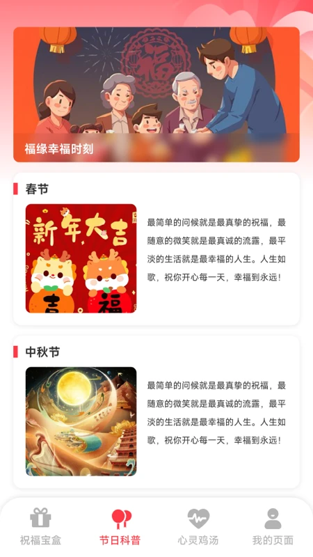 【福气宝盒】一款集福气祝福语、节日科普、心灵鸡汤功能于一体的应用,为你带来温暖与欢乐。