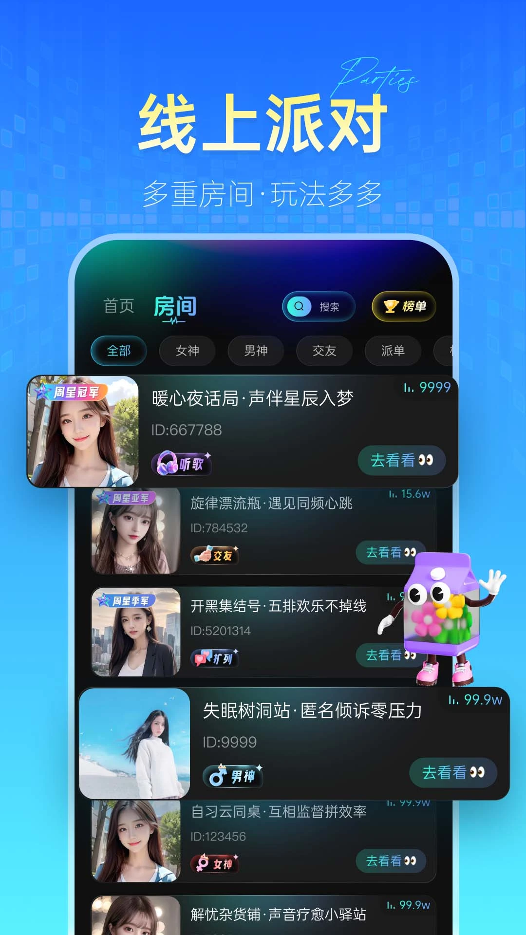 主题声音派对:定期举办影视配音、ASMR等特色语音活动,解锁社交新玩法。
