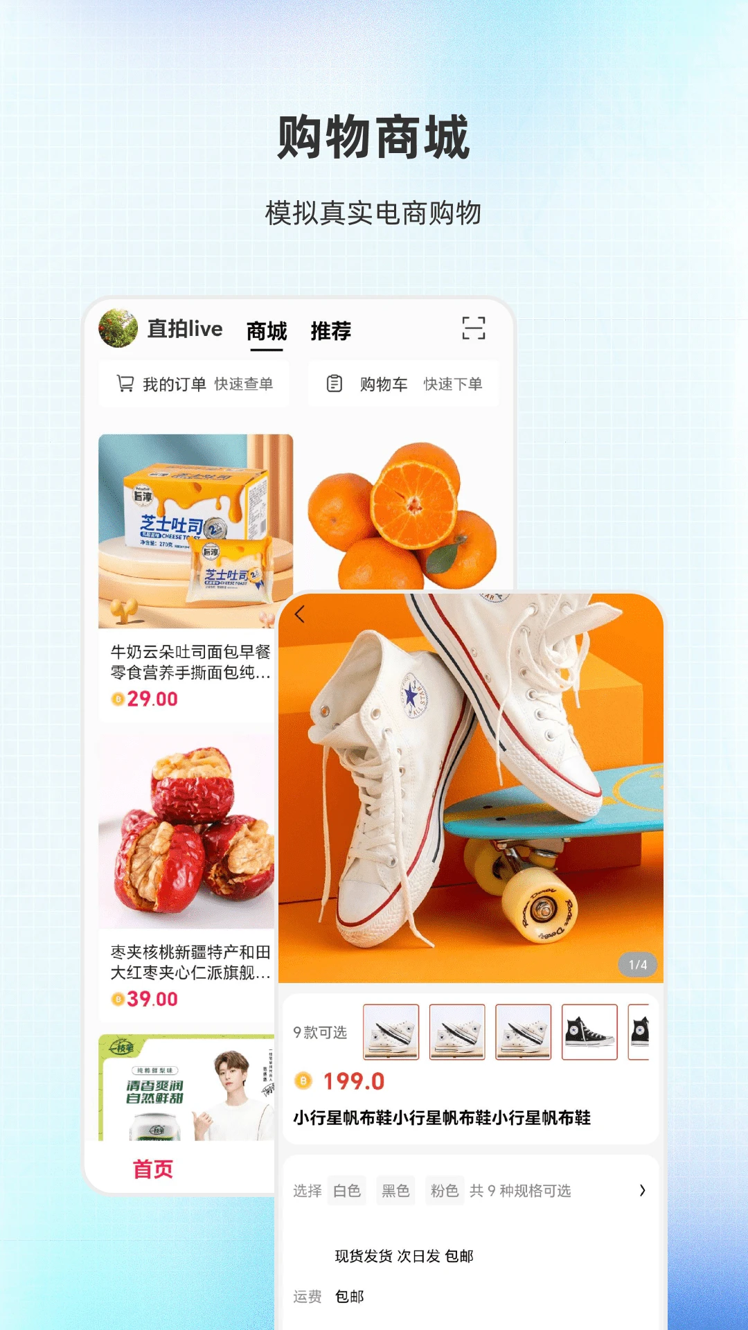 直播带货模拟:真实还原直播场景,包含弹幕互动、商品讲解等功能。