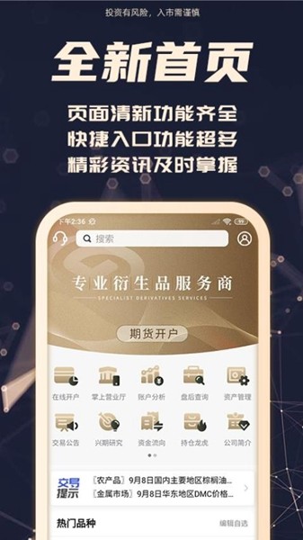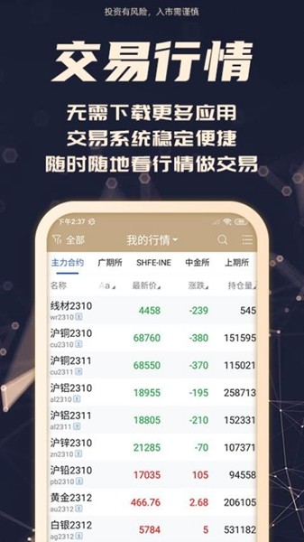 该平台汇聚了国内外主要期货品种的实时行情数据,覆盖农产品、金属、能源化工、金融期货等多个领域。通过直观的图表展示和专业的分析工具,用户可以轻松掌握市场动态。同时,兴业期货App还提供7×24小时不间断的全球财经资讯,确保投资者能够第一时间获取重要市场信息,为投资决策提供有力支持。