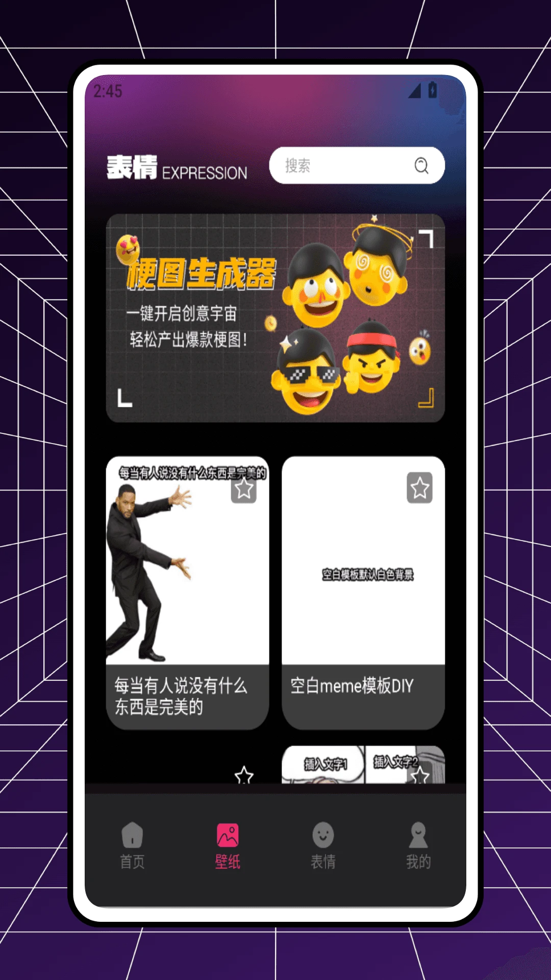 还在为手机界面单调、聊天缺新意而烦恼?"全能实况"app为你带来全新解决方案!这款集壁纸制作与表情管理于一体的创意工具,让个性化表达变得简单有趣。无论是想打造独一无二的手机桌面,还是希望在社交聊天中展现独特风格,"全能实况"都能满足你的需求。它拥有强大的图片编辑功能和丰富的素材库,支持用户轻松创作专属壁纸;同时提供海量特色表情包,让你的聊天对话更加生动有趣。这款app将实用性与趣味性完美结合,是追求个性表达的智能手机用户不可错过的选择。