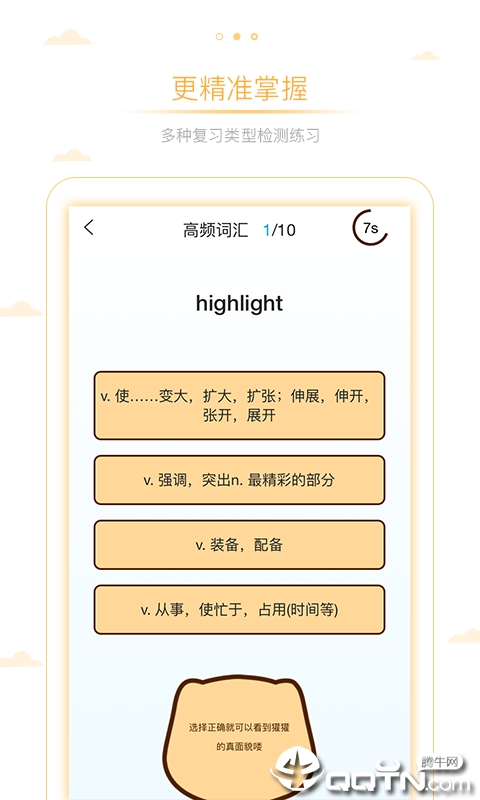 美而不失童趣的设计,让新航道的吉祥物陪你一起背单词,在屠鸭路上不再枯燥。精心设计的动画效果和交互体验,让每个学习环节都充满惊喜,有效缓解备考压力。