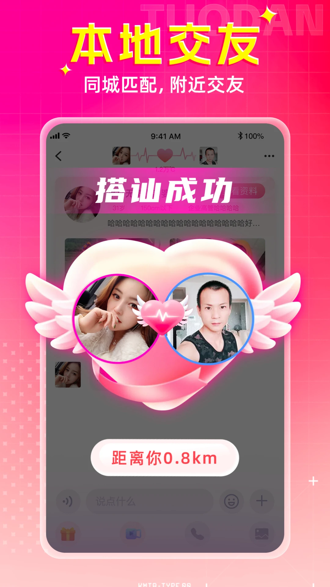 —同城聊天:平台根据个人地理位置推荐同城附近的单身异性,旨在快速找到合适的心仪对象,让交友高效,让聊天简单。