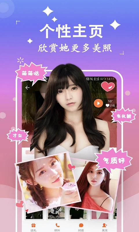 语音视频:告别孤单,遇见心动的她,视频聊聊,美女小姐姐主动打招呼,聊天,随时开心畅聊。