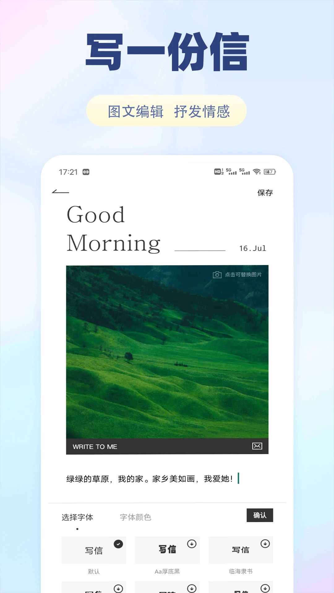 信纸模板库:提供上百款精美信纸模板,让每封信都充满仪式感