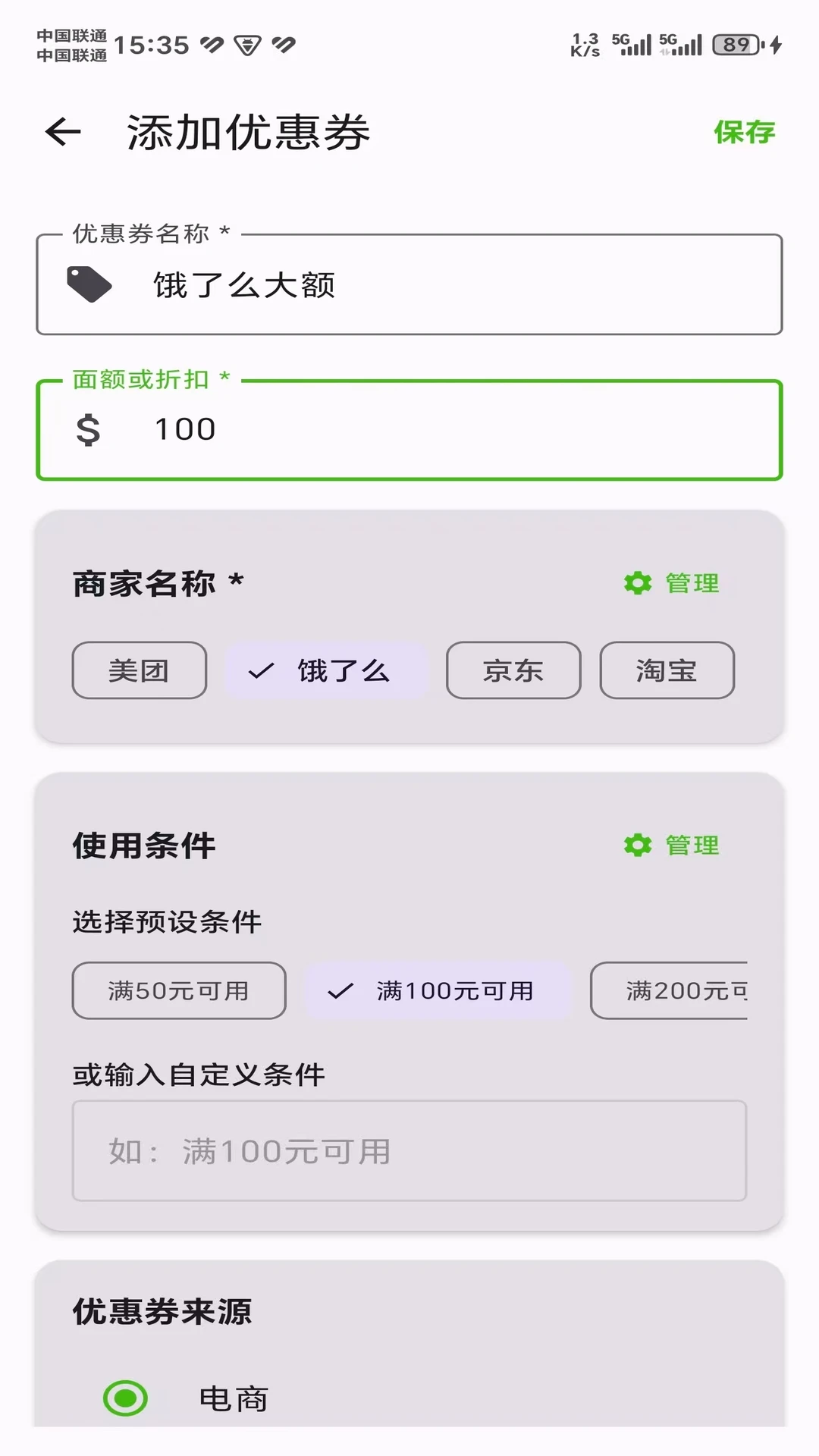 智能提醒功能:自动检测优惠券过期时间,及时提醒用户使用。