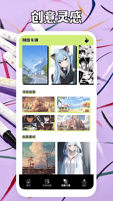 铅笔盒子提供多种画笔工具,包括铅笔、水彩笔、马克笔等,满足不同绘画需求。