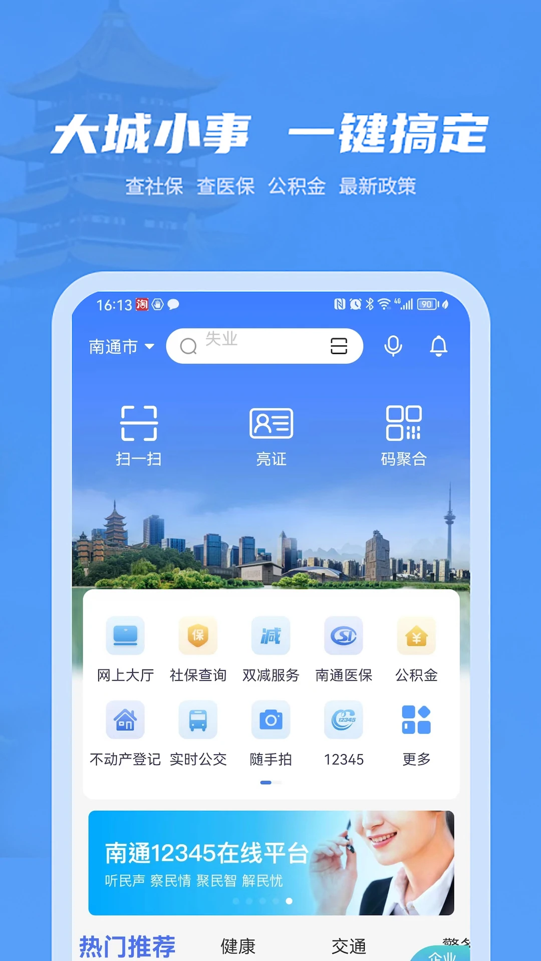 南通百通是一款由南通市政府推出面向南通市民的公共服务移动应用,基于以市民为中心的理念,打造零距离、为广大南通市民提供一站式的政务服务平台,让市民足不出户就可享受到方便快捷、统一规范、优质高效的政务服务,实现服务便民利民、办事依法依规、信息公开透明。