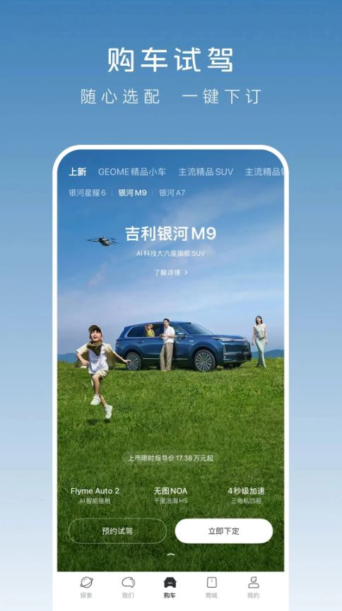 吉利银河app是吉利汽车专为银河系列车主打造的一款全方位智能汽车服务平台,集预约试驾、购车咨询、远程车控、资讯获取等功能于一体,致力于为用户提供便捷高效的用车体验。作为吉利银河车主的专属助手,这款app不仅整合了最全面的车型信息和最新动态,还能让用户第一时间掌握品牌活动、促销优惠等实用资讯。通过吉利银河app,用户可以轻松完成从了解车型到预约试驾再到在线订车的全流程操作,真正实现一站式购车服务。