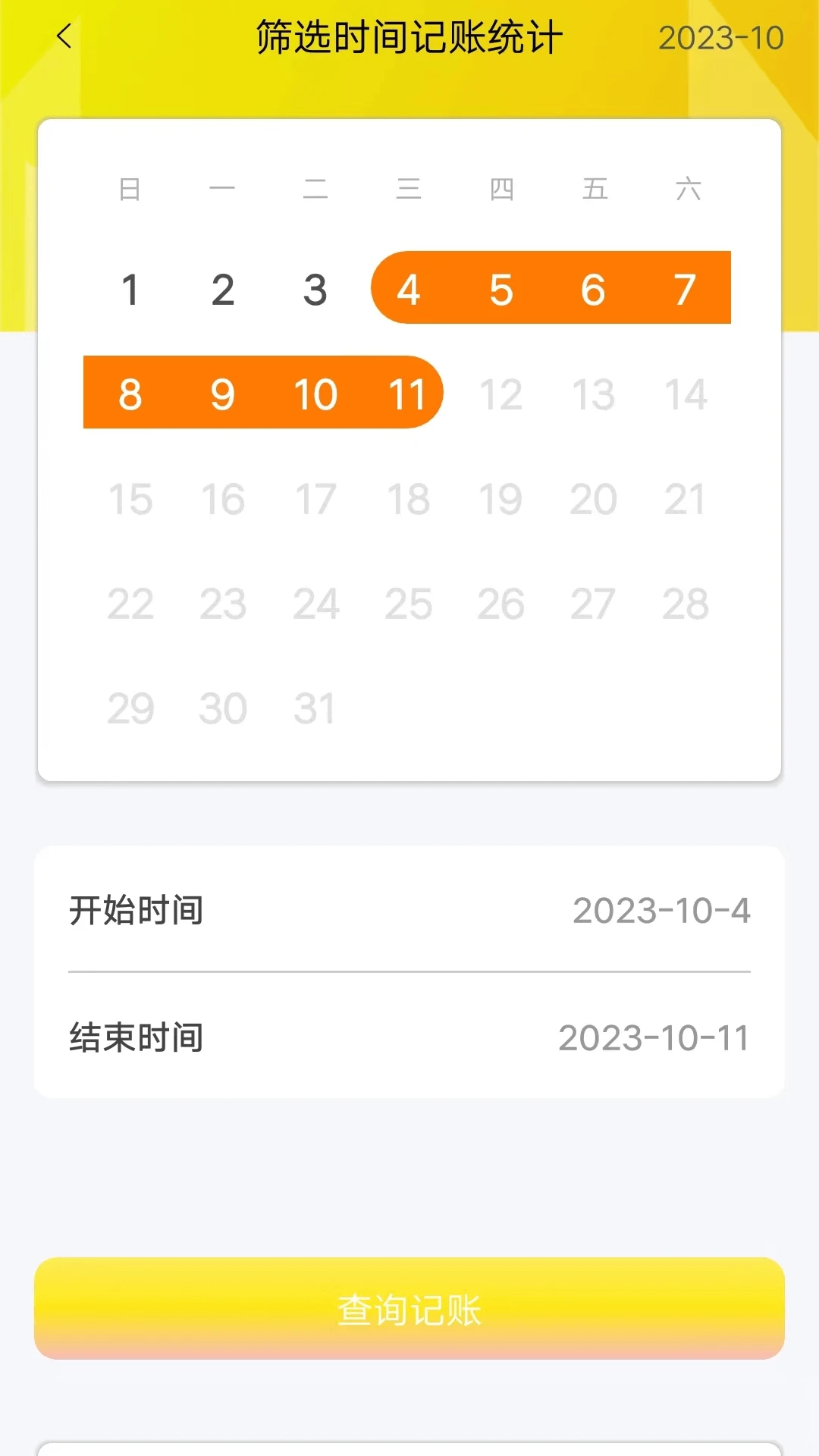 时间筛选功能,支持自定义日期范围查询,灵活查看不同时段的财务情况。