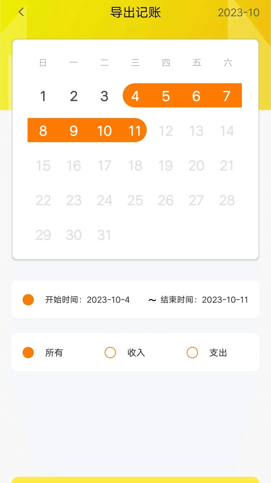 可以按选择日期时间筛选的(或者将所有)记账数据导出到一个表格内。