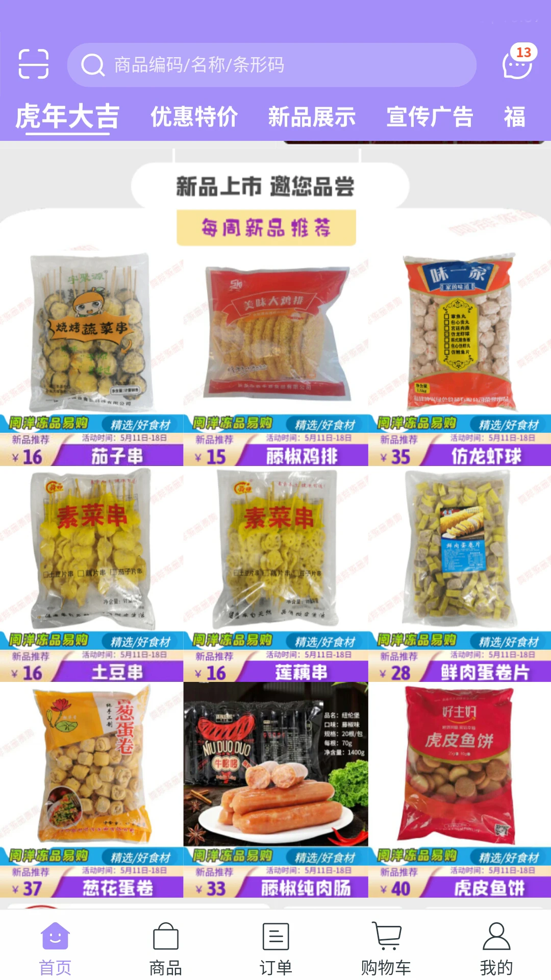 智能搜索产品:内置精准搜索功能,支持关键词、分类筛选,快速定位所需冻品、干货及调味品。