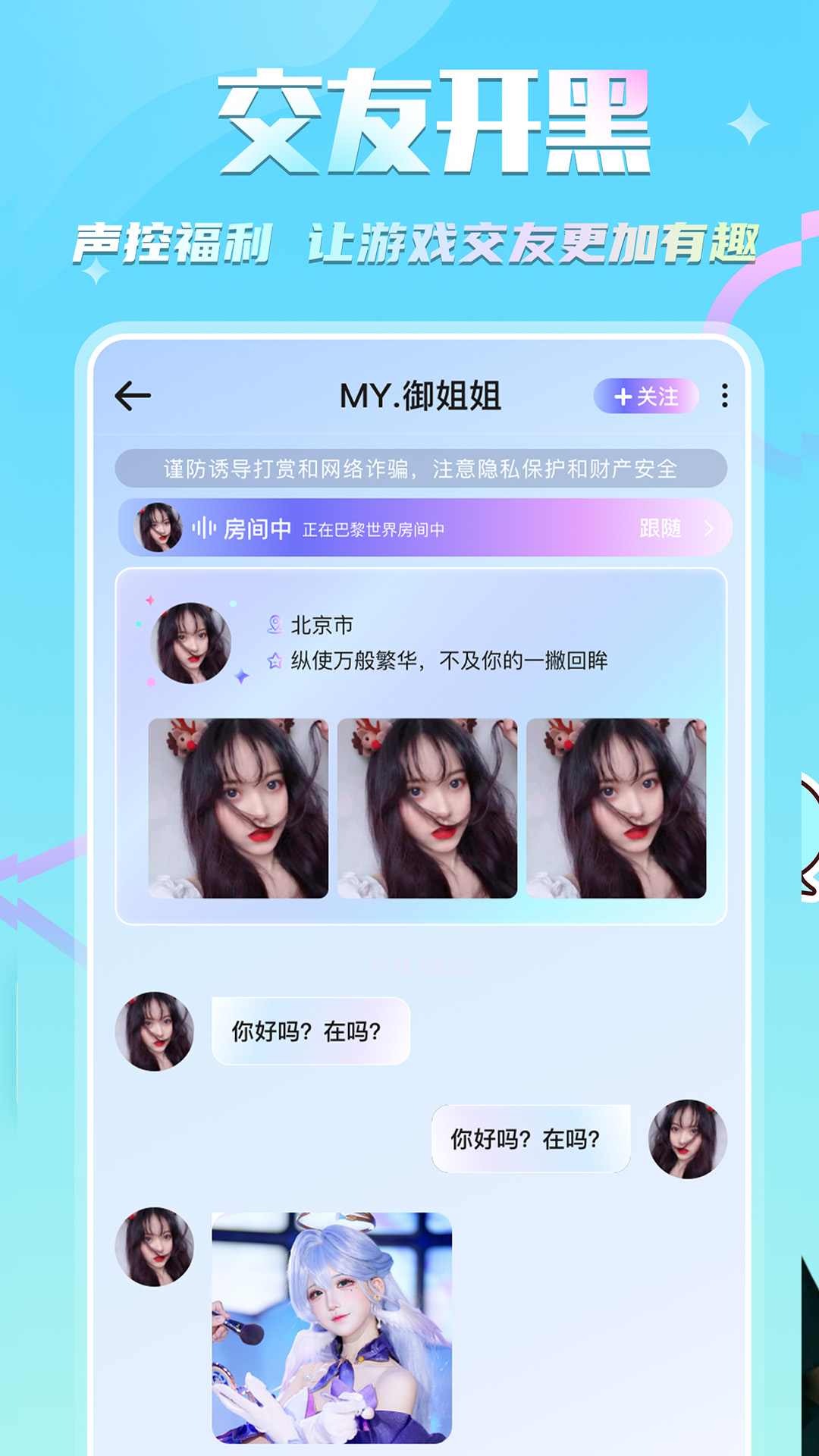 在这里,您可以随时分享生活中的点滴趣事,与志同道合的朋友畅所欲言。系统会根据您的兴趣推荐相关话题和社群,帮助您快速找到聊得来的伙伴。无论是心情随笔、旅行见闻还是美食推荐,都能在这里找到共鸣。24小时在线的智能助手还会为您提供贴心的聊天建议,让对话更加生动有趣。