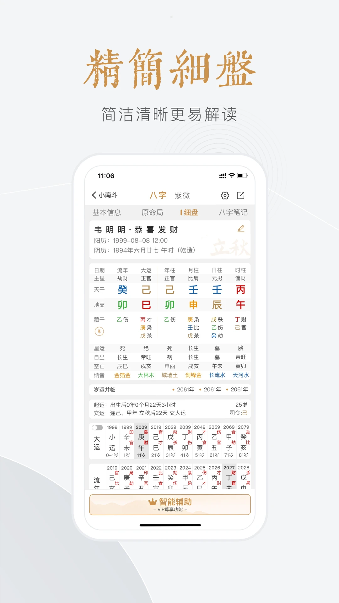 细盘功能:支持大运、流年、神煞等详细命理信息的展示与分析。