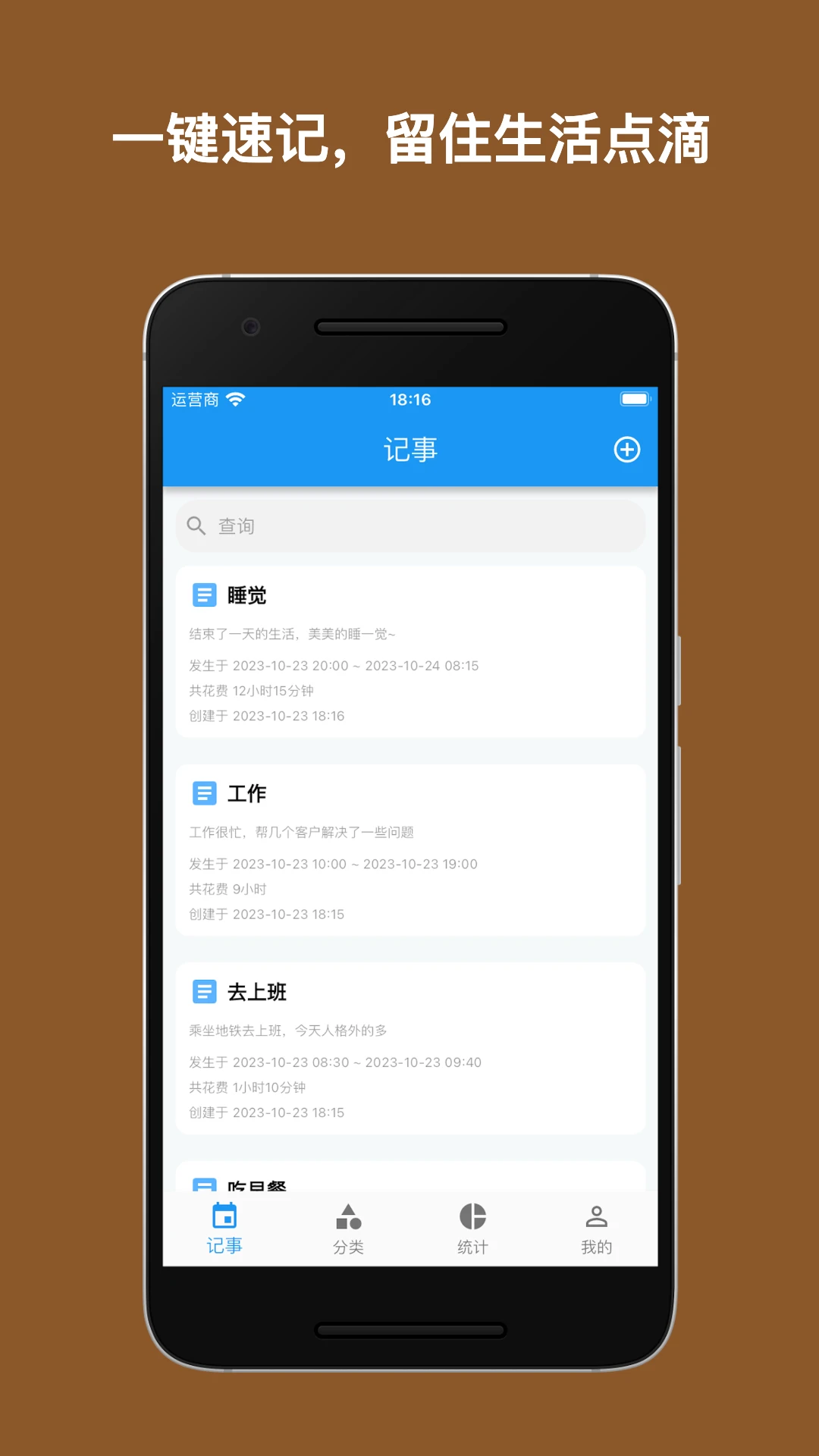 点滴是一款专注于记录生活与时间管理的应用,它不仅是您的私人记事本,更是时间分析的得力助手。通过点滴,您可以轻松捕捉生活中的每一个精彩瞬间,无论是难忘的旅行、温馨的家庭聚会,还是工作中的灵感闪现,都能被完整保存。同时,点滴还能帮助您追踪时间的去向,通过直观的统计图表,让您清晰地了解时间分配,从而更高效地规划生活。作为一款单机应用,点滴严格保护您的隐私,所有数据仅存储在本地,无需担心信息泄露,让您安心记录每一刻。