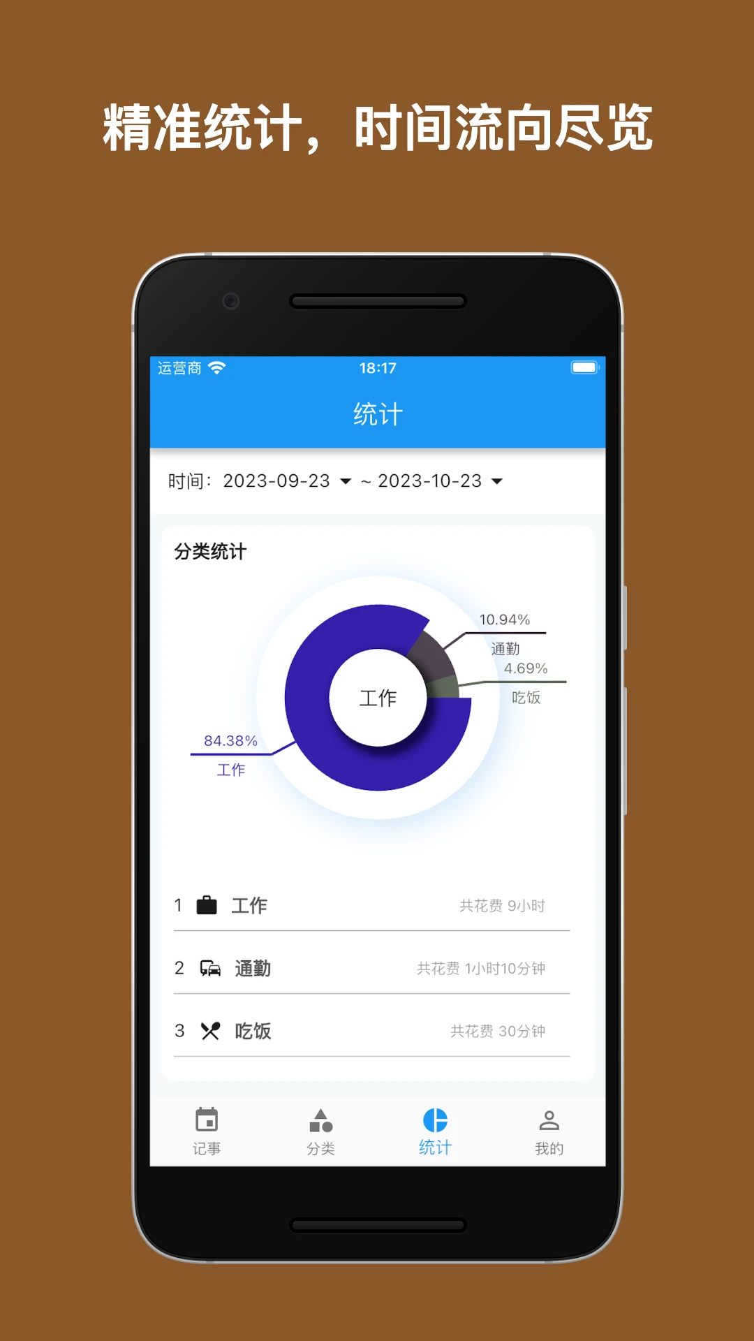 时间统计功能自动生成可视化图表,直观展示时间分配情况,助力高效规划。
