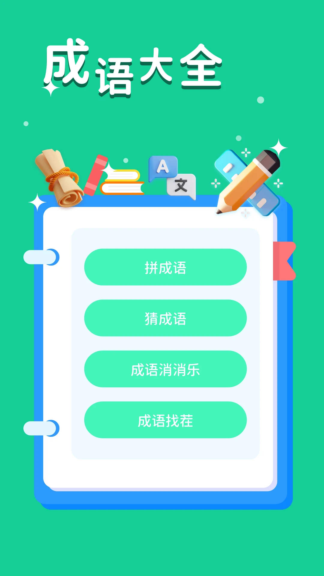 成语大全模块:收录上千条常用成语,提供释义、出处和例句,帮助用户系统学习成语知识。