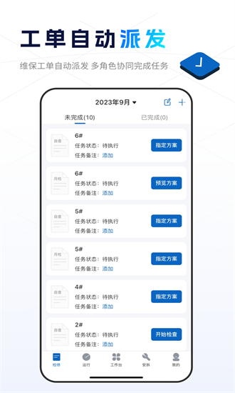 维修保养线上设置,及时让维保人员前去维护,让设备恢复到最佳状态。系统会根据设备使用情况自动生成维保计划,并通过消息提醒维保人员按时进行设备维护,延长设备使用寿命。