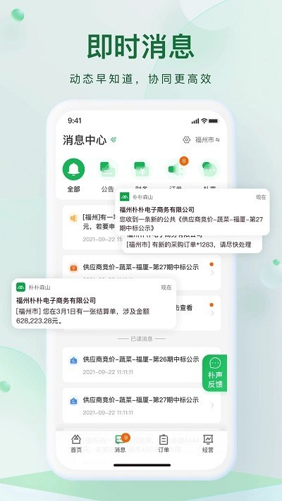 【消息】采用智能语音播报系统,重要消息实时提醒,确保供应商不错过任何关键信息,服务更加人性化