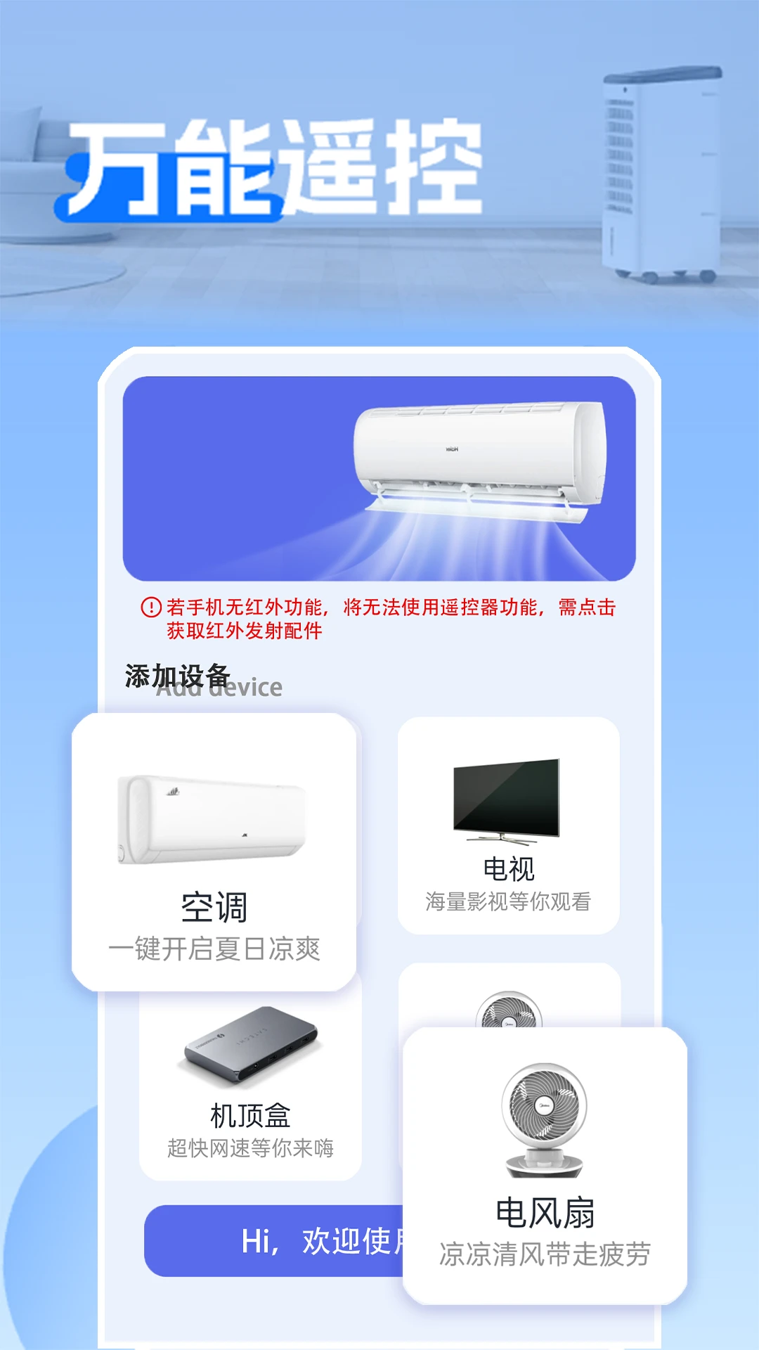 支持多设备管理,一个应用即可控制家中所有红外家电。