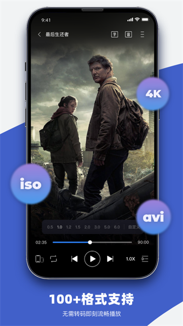 视频格式:支持mp4,mkv,wmv,flv,avi,rmvb,blu-ray,4k,杜比视界等格式的视频文件播放。音频:支持mp3,wma,wav,flac,dat,ac3,aac,ape,ogg等几乎全部声音格式。网络流:支持http,rtmp,rtp,udp,hls,ftp等格式(流式传输),可以添加直播源,看电视直播,游戏直播等。局域网络:通过WebDAV、SMB快速连接并播放局域网视频文件且支持排序。支持、阿里云盘。加密空间:可将文件设置成隐私文件,保护个人隐私。字幕:自动加载和电影同名的字幕文件,支持加载外挂字幕和自动搜索字幕。投屏:支持投屏到其它设备观看。倍速播放:可在0.1-6.0区间自定义播放速度。此外,还新增了画中画功能,让您可以边看视频边处理其他事务。