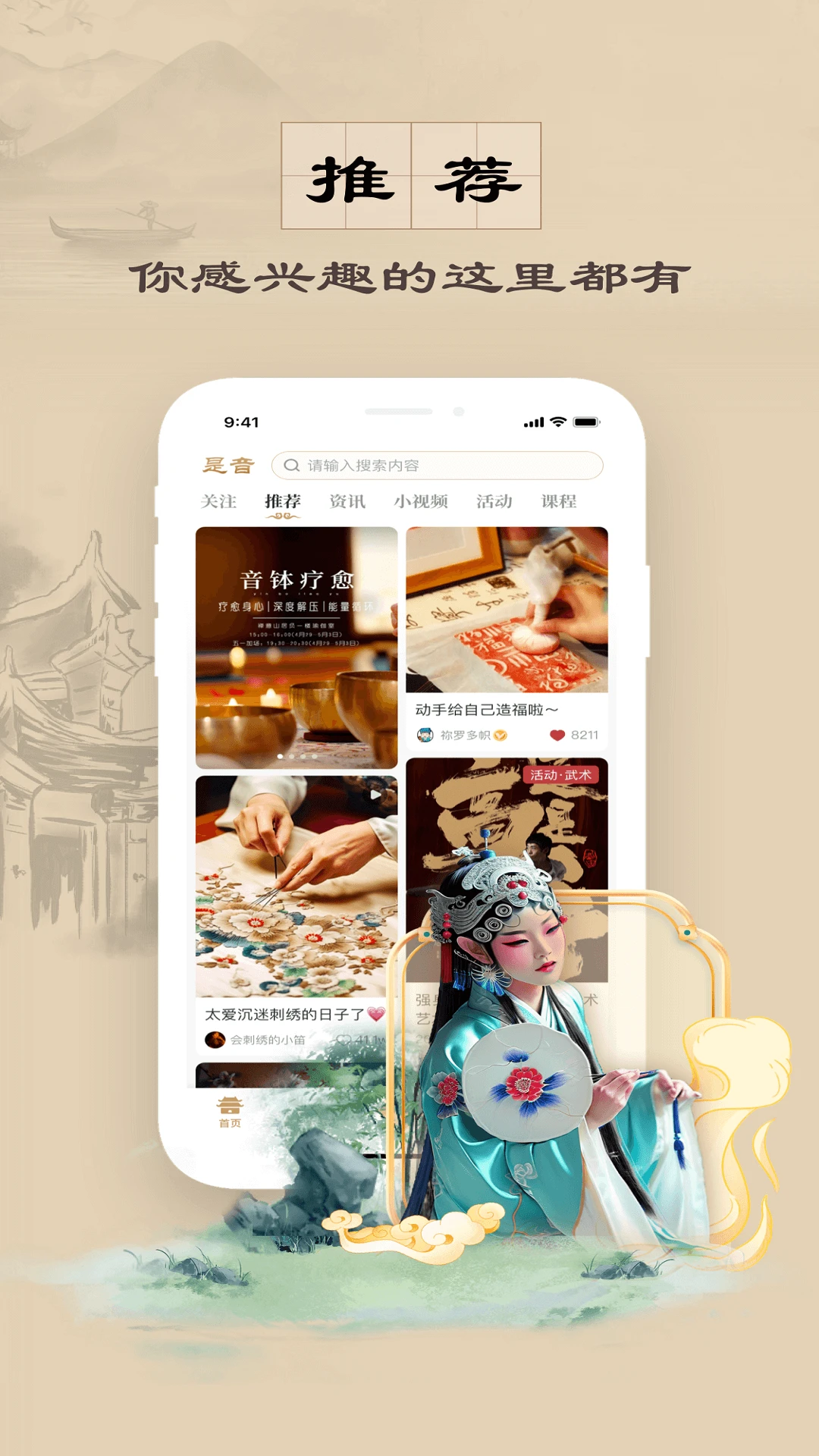 “是音”APP提供海量国粹内容,涵盖诗词、书画、戏曲等多种艺术形式。