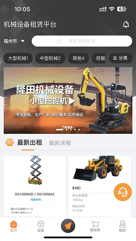 平台支持多种设备类型展示,包括工程机械、建筑设备、农业机械等各类设备租赁