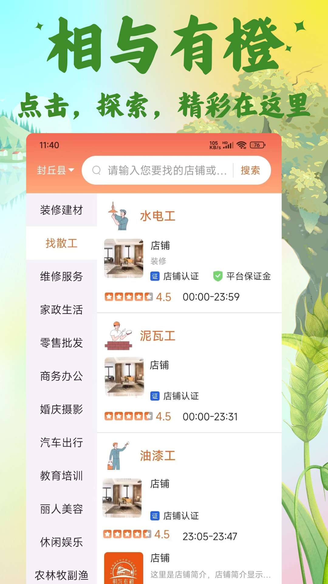相与有橙为您提供丰富的本地商铺信息,覆盖餐饮、服饰、家居等多个品类。通过高清图片和详细描述,您可以全方位了解每家店铺的特色与风格。平台还会根据您的浏览记录和偏好,智能推荐可能感兴趣的商铺和商品。每个店铺主页都展示了营业时间、联系方式等实用信息,方便您随时查询。您还可以查看其他用户的真实评价,为消费决策提供参考。