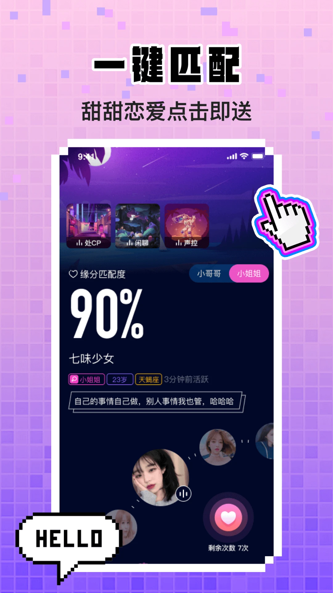 不眠-语音扩列交友处cp这里是声控的专属基地,满足一切连麦需求~在线语音交友,日常戏精pia戏,有趣的小哥哥小姐姐都在这里哦~【交友扩列】海量优质用户,缘分随心匹配,邂逅心动的那个TA【语音连麦】连麦交友,不再孤单,找到属于你的soulmate【房间pia戏】声控专属福利,你想要的声音全都有【K歌派对】拼才艺,灵魂歌手就是你本人