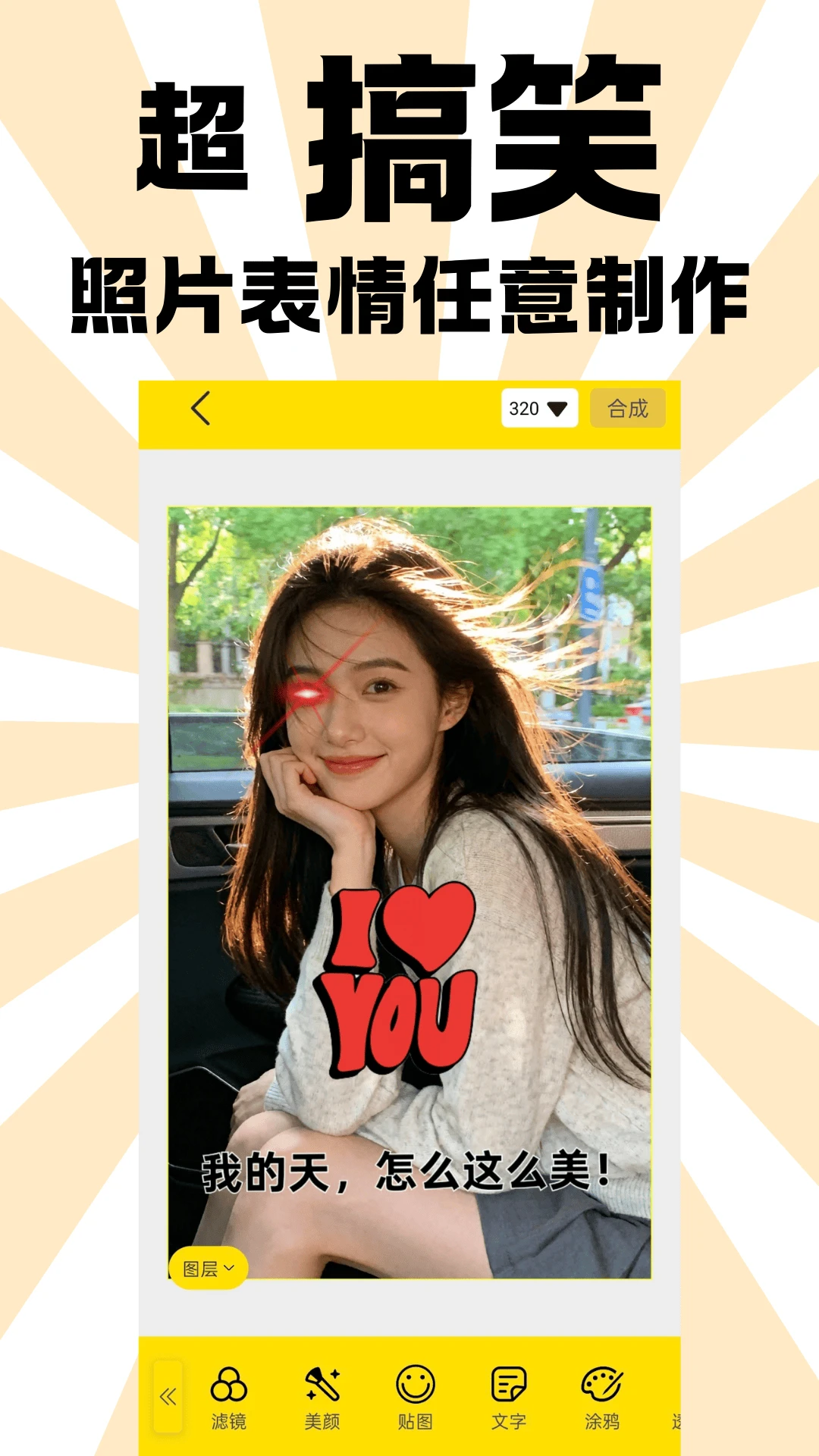 智能图片编辑:支持一键裁剪、添加文字和贴纸,轻松打造个性化表情,让创作更简单。