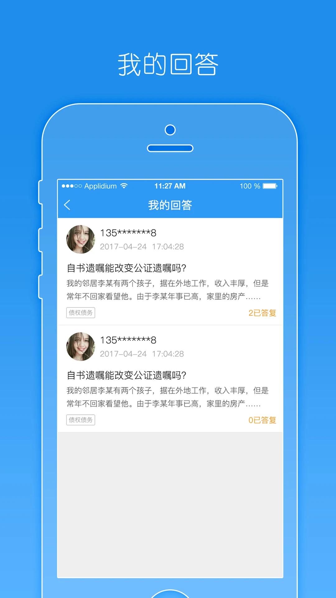 高效响应速度:问题提交后,律师端即时收到提醒,确保当事人快速获得专业解答。