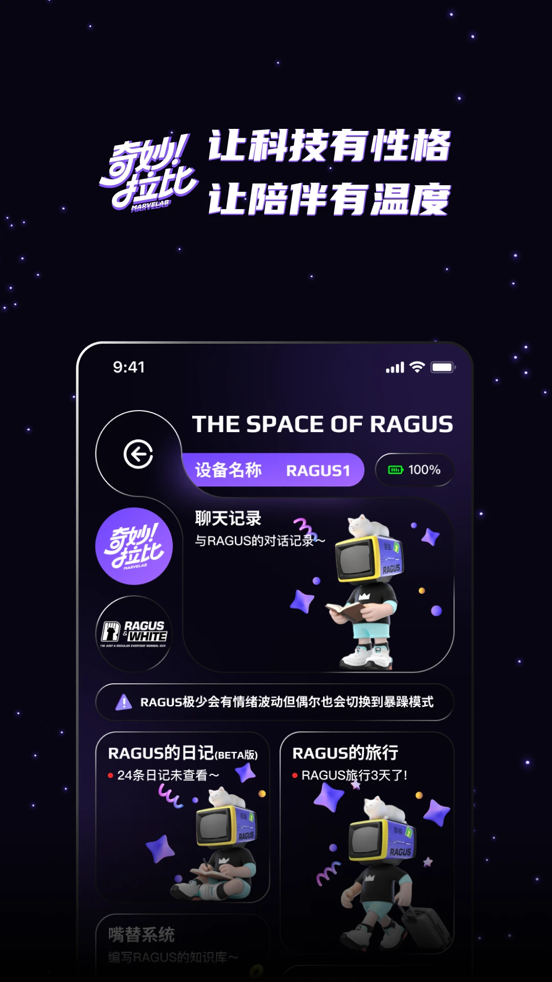 ***角色个性设定**:自定义AI角色(如RAGUS)的语音、性格、行为偏好,打造独一无二的AI伙伴。