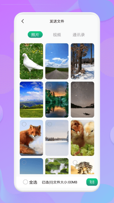 第一步:在新手机上选择"接收文件"功能,同时在旧手机上选择"发送文件"选项。您可以根据需要选择要传输的数据类型,包括照片、视频、通讯录、短信等。