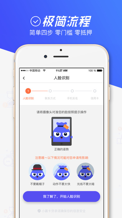 申请方便:支持62家银行信用卡快速验证,三步完成申请流程,生物识别技术让操作更顺畅;