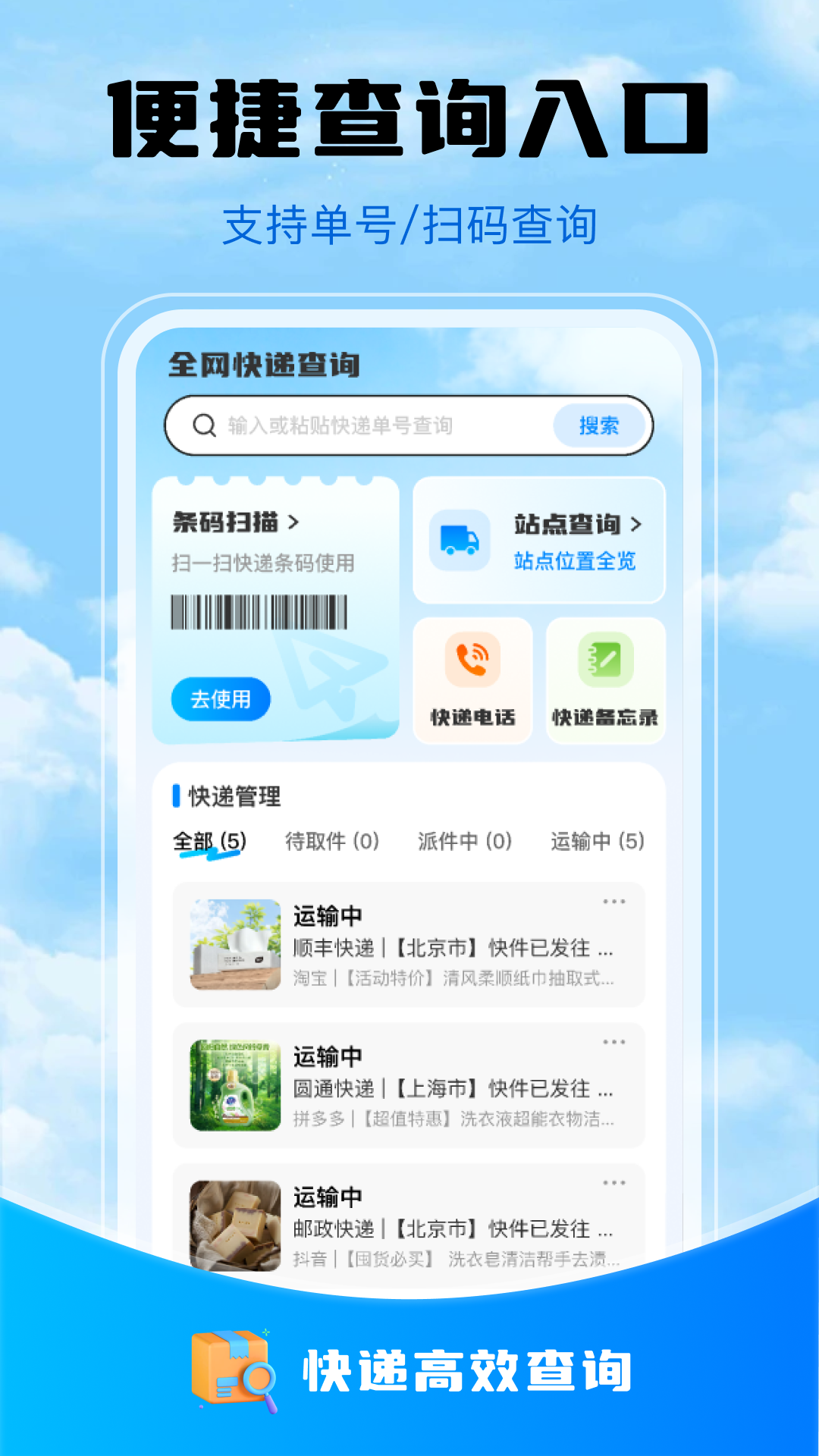 快递物流查询宝特别注重用户体验优化,界面设计简洁明了,查询结果展示清晰直观。用户可以通过扫描快递单号快速添加查询,也可以手动输入单号进行检索。系统会自动识别快递公司,省去了用户手动选择快递公司的麻烦。此外,应用还支持历史记录保存功能,方便用户随时查看过往的快递信息。
