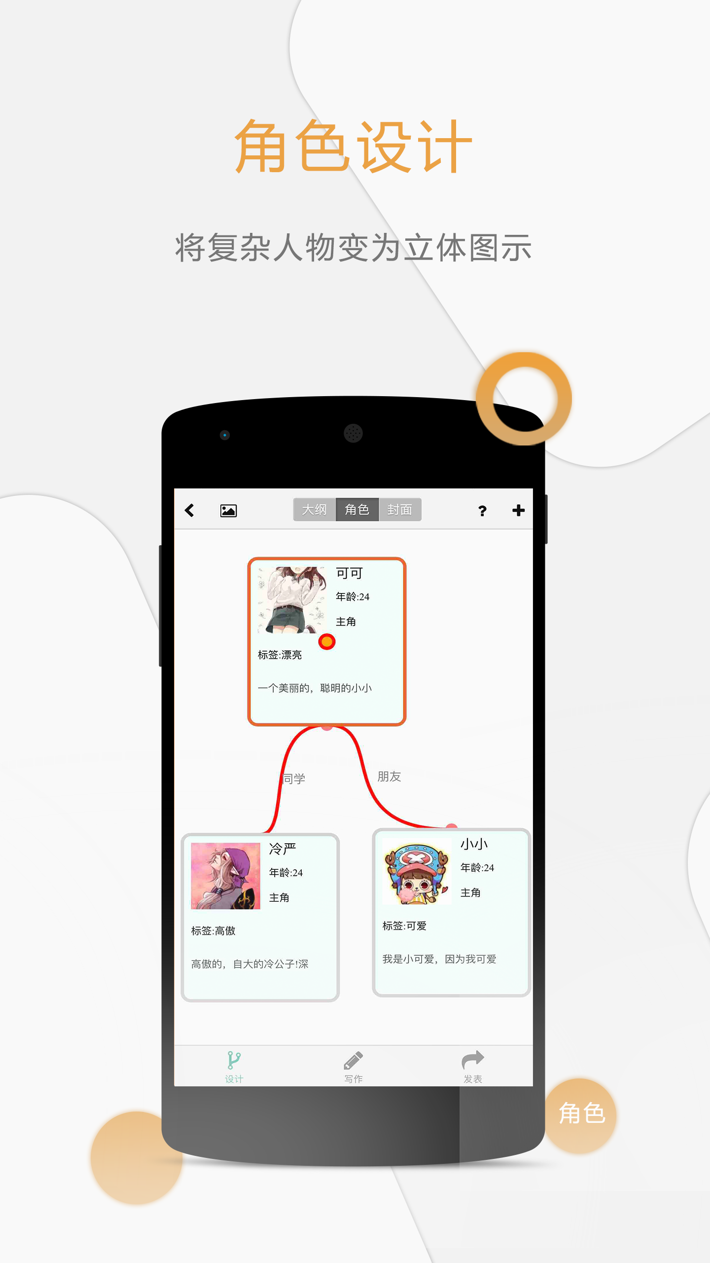 完成作品创建后,点击作品左侧的设计按钮进入大纲编辑页面。页面提供大纲、角色和封面三个选项,双击任意章节可进入编辑状态。用户可以为章节命名并添加简要剧情描述,同时支持插入小章节和图片等多媒体内容。如果对某一章节不满意,可以选中后点击删除按钮进行移除。大纲功能帮助用户梳理故事脉络,让创作更加有条理,提升整体写作效率。