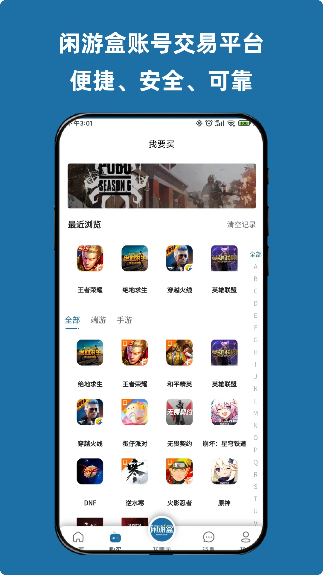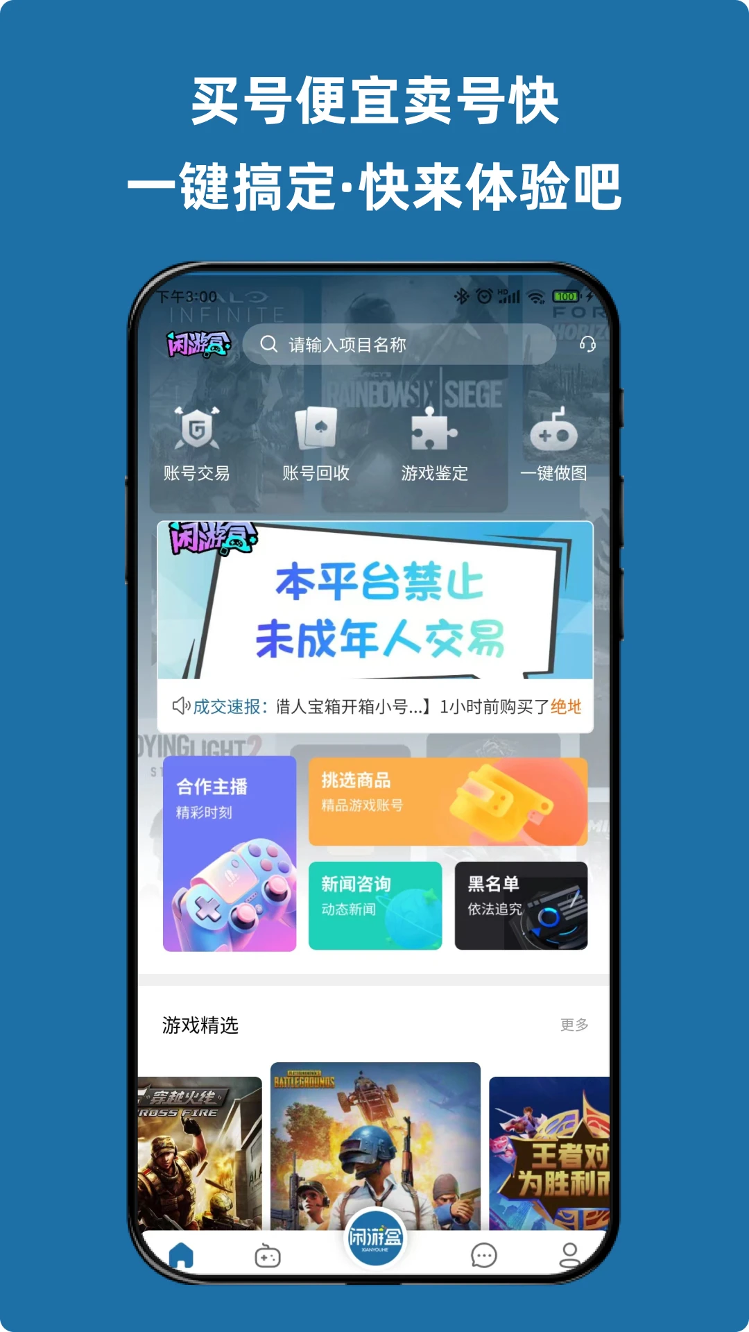 闲游盒是专注于账号买卖、账号回收、账号担保的综合性游戏账号交易APP,为亿万游戏玩家提供专业、安全的游戏交易服务,同时具备实名认证,找回包赔,交易均签署协议等多重安全保障,切实保障买家和卖家的利益,游戏账号交易就选闲游盒。