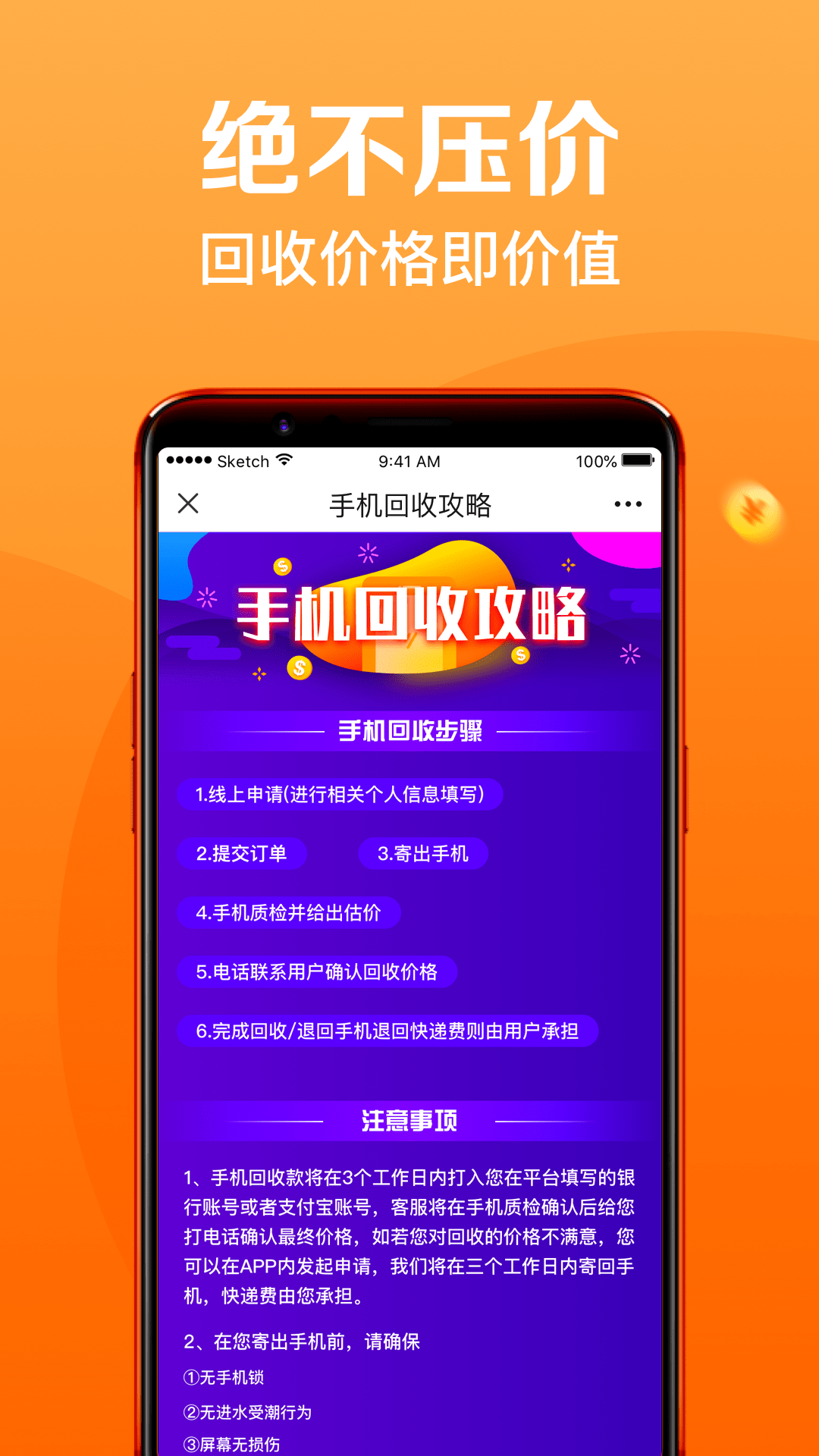 极速到账体验:独创的"先付款后寄货"模式,让用户在寄出手机前就能收到款项,资金周转更灵活。