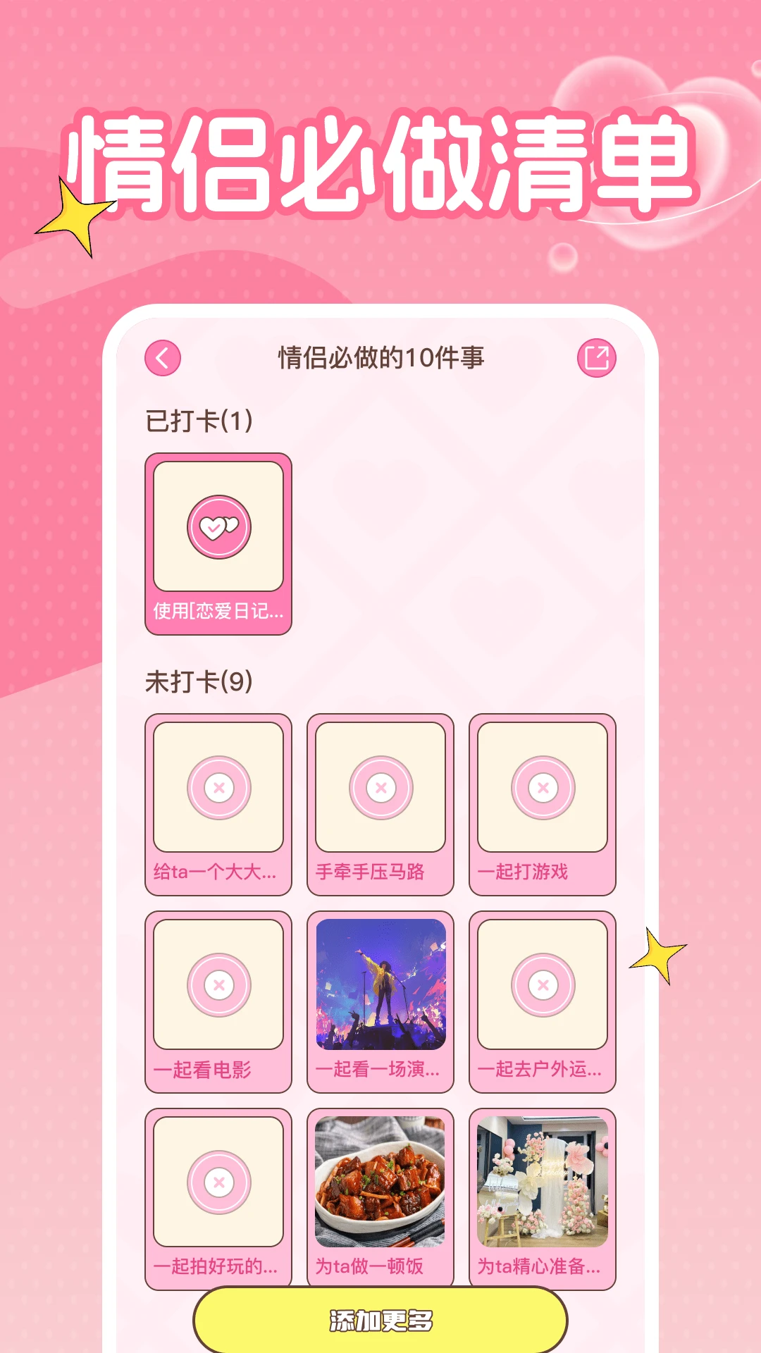 互动打卡功能,情侣可以共同完成小目标,增进感情互动。