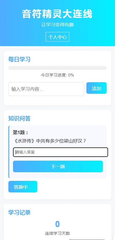音符精灵大连线APP为你打造趣味学习体验,包含每日知识问答、学习记录跟踪等功能。无论是巩固旧知识还是探索新领域,都能让你在互动中收获成长。