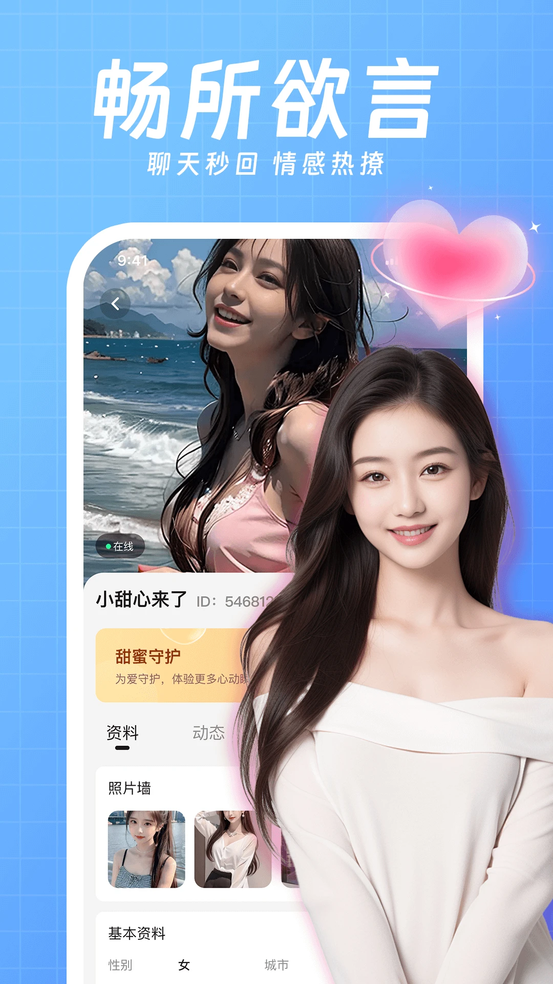 想爱是一款专为单身男女打造的聊天约会社交软件,致力于为用户提供真实、高效的交友体验。平台通过严格的实名认证和真人认证机制,确保每位用户的真实性,让交友更安全可靠。无论是语音聊天、视频约会,还是动态分享、礼物互动,想爱都能满足多样化的脱单需求。丰富的社交场景和创新的匹配模式,帮助用户快速找到心仪对象,告别孤单生活。在这里,每一次相遇都可能开启一段浪漫故事,快来想爱,遇见属于你的TA!