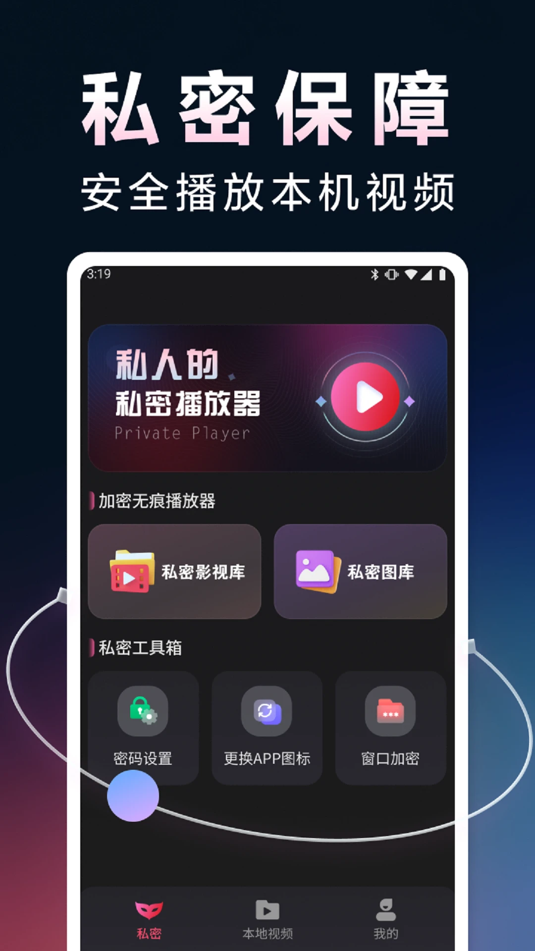 私人空间功能,可隐藏特定视频文件,仅通过密码访问。