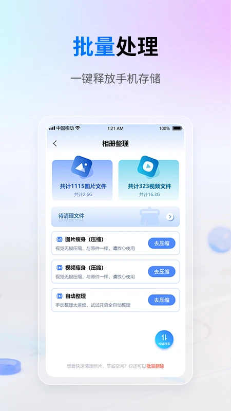 视频瘦身云App是一款专注于优化视频和图片文件的智能工具,能够在保证画面质量的前提下,显著减少文件大小,满足用户日常存储和分享的需求。无论是社交媒体上传、邮件发送还是设备存储管理,这款App都能帮助用户轻松解决大文件带来的困扰,让视频和图片处理更加高效便捷。