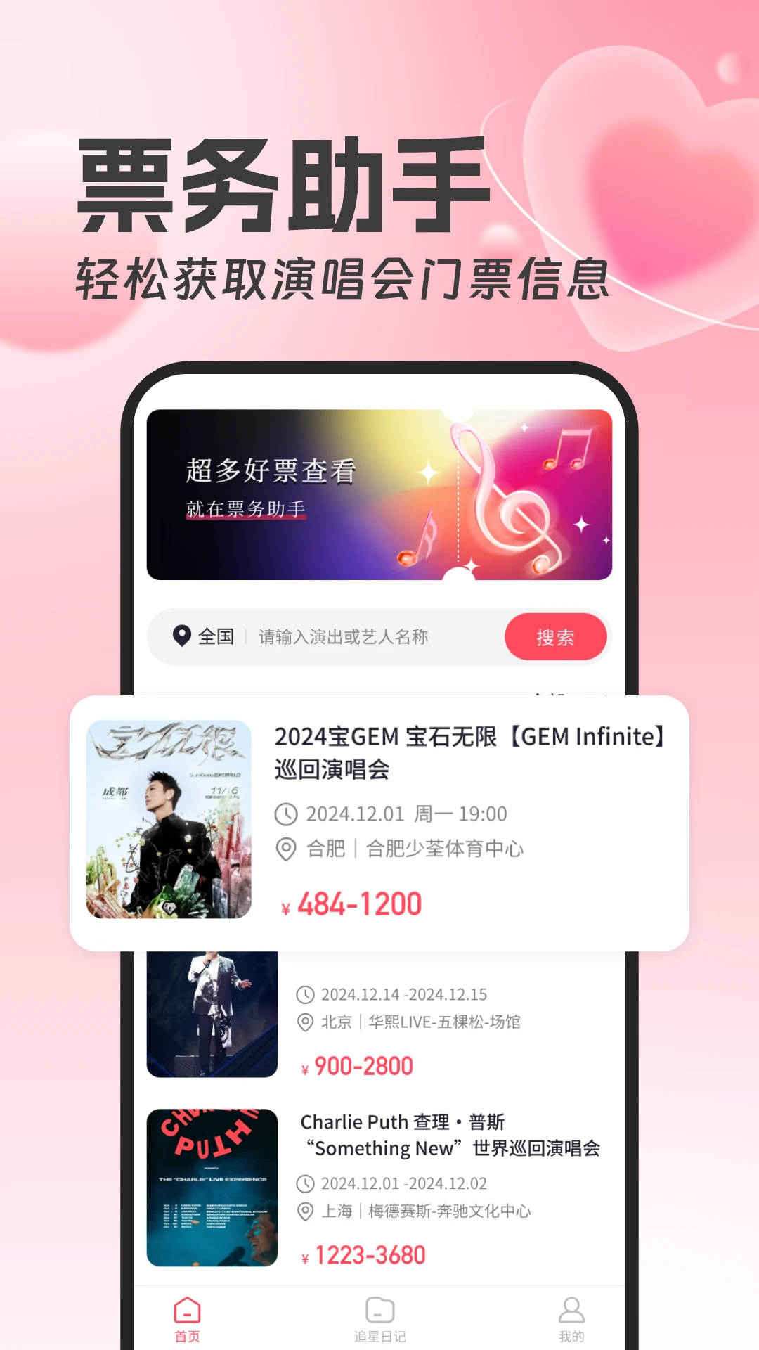 演唱会票务助手是一款专为音乐爱好者和追星族打造的智能票务管理工具,旨在为用户提供便捷的演唱会信息查询和个性化的追星体验。通过整合全国各大票务平台的数据,这款应用能够实时更新演唱会信息,帮助用户快速找到心仪艺人的演出场次。同时,它还提供追星日记功能,让用户记录每一次演唱会的精彩瞬间,无论是照片、视频还是心情随笔,都能轻松保存。演唱会票务助手不仅是购票的好帮手,更是追星旅程中的贴心伴侣。