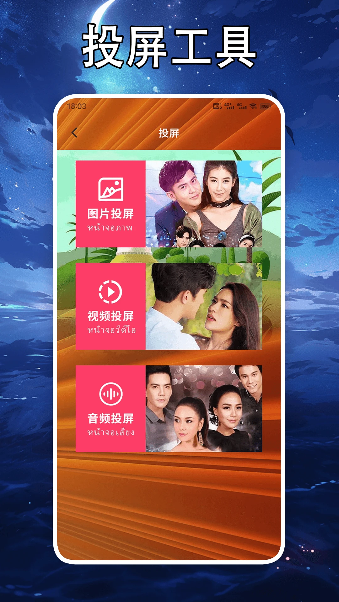 支持投屏功能,可将内容投射到智能电视或投影仪